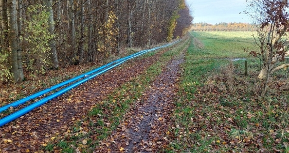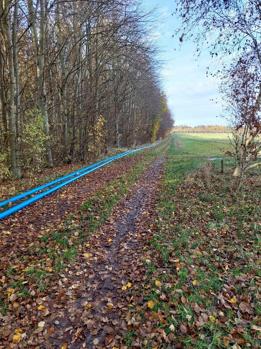 I forbindelse med den kommende fusion mellem Selkær Mølle Vandværk og Vandcenter Djurs er vi langt med at etablere den ca. 1,6 km lange forsyningsledning, der skal forbinde Selkær Mølle med vandværket i Sostrup. Her den 1. december mangler vi cirka 350 m ledning, samt etablering af sektionsbrønden, hvor tilslutningen til Selkær Mølles ledningsnet sker.